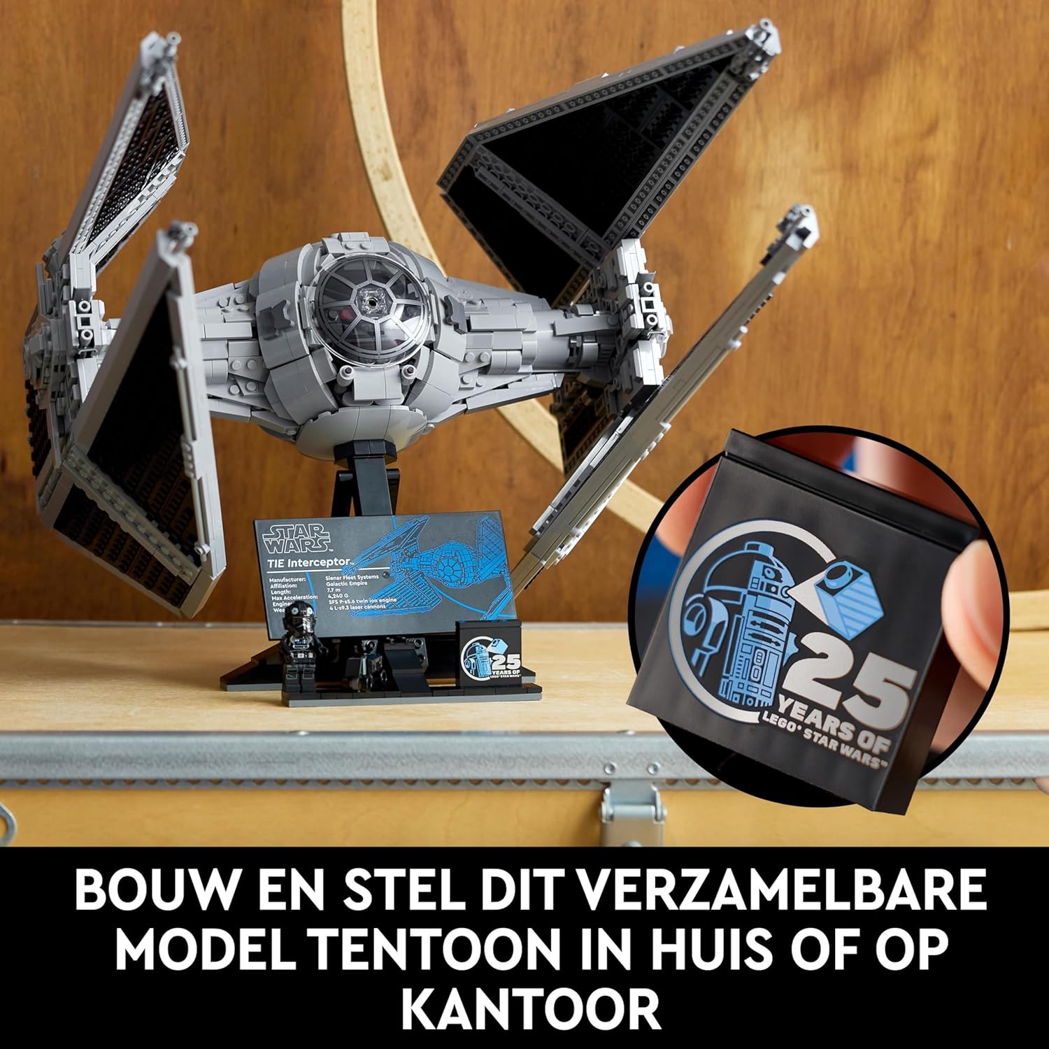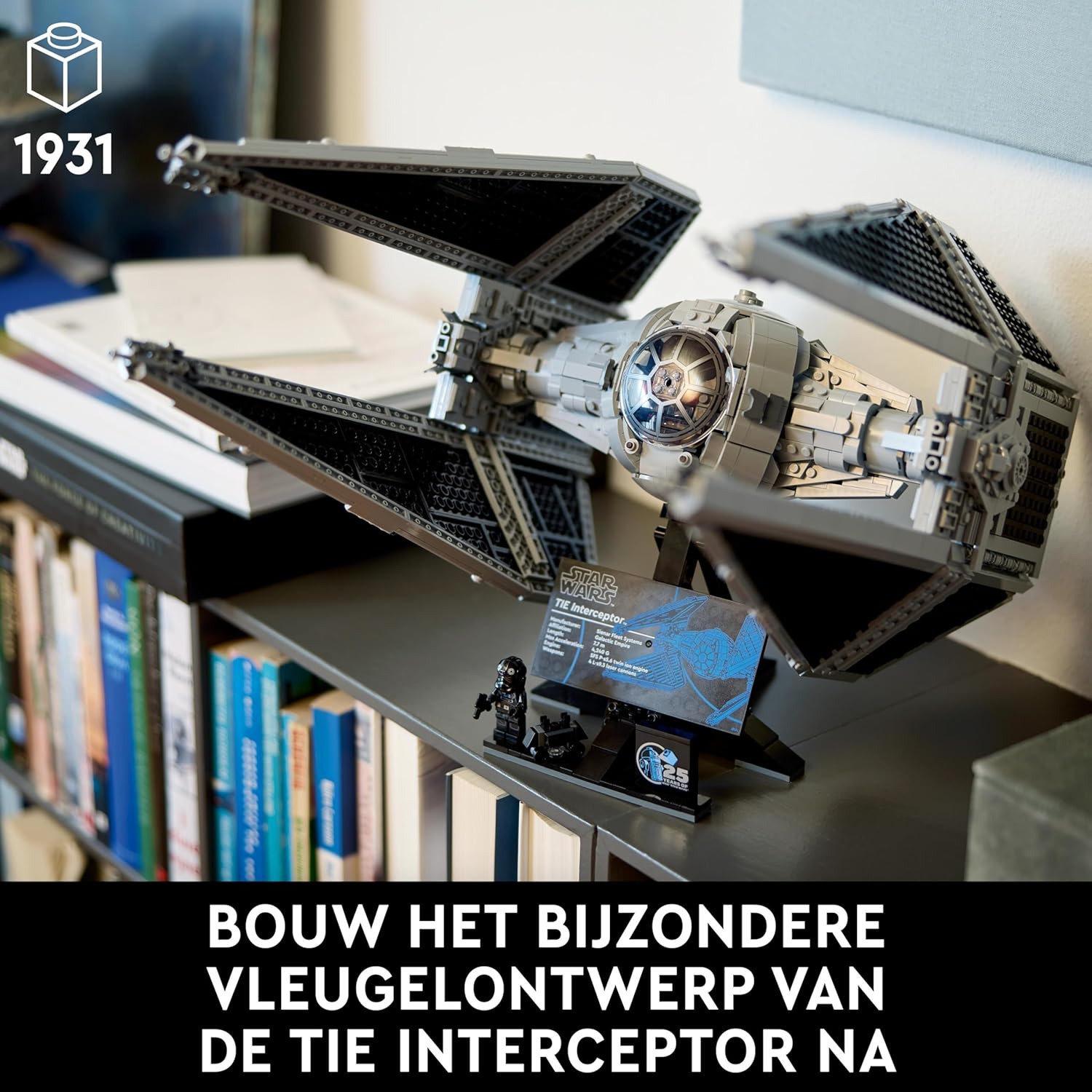 - Made to stand - Place your TIE Interceptor on the buildable display stand that features an information plate, an anniversary stone celebrating 25 years of LEGO Star Wars and has space for the TIE Pilot and Mouse Droid so it can be used as a fancy Star Wars decoration